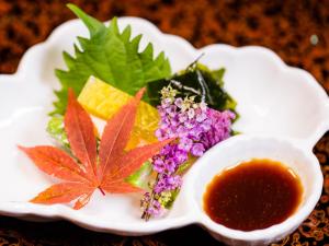 Les repas sont servis dans les chambres à heure fixe et se compose d'une cuisine végétarienne bouddhiste. De plus, des plats sans gluten peuvent être demandés moyennant des frais supplémentaires. Des groupes de 4 personnes ou plus peuvent dîner dans la salle à manger de style japonais, où des chaises sont fournies sur demande préalable.