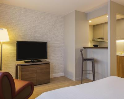Each of the studios and apartments are equipped a flat-screen TV and a safety deposit box. Free WiFi access is provided. The kitchens are complete with a dishwasher, refrigerator and kitchenware while the bathrooms are fitted with a bath.