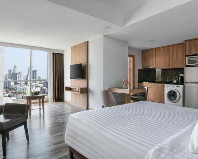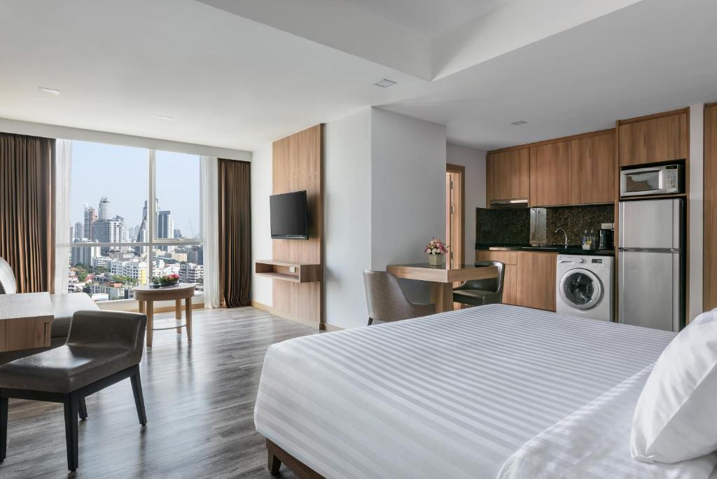 Offrant une vue imprenable sur Bangkok, les suites et studios spacieux de l'Adelphi Bangkok comprennent une kitchenette et une pièce à vivre. Ils disposent d'une télévision à écran plat, d'un lecteur DVD et d'une connexion Wi-Fi gratuite.