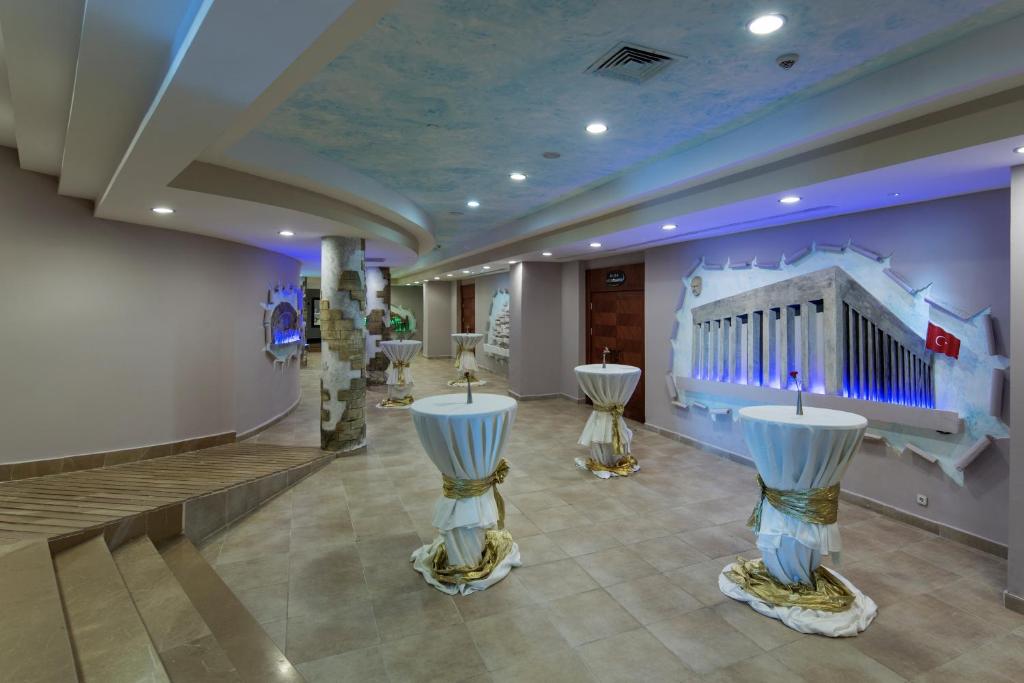 Des cuisines turque et internationale sont proposées toute la journée au buffet et aux restaurants servant un menu à la carte. Dans la soirée, vous pourrez assister à des spectacles incroyables avec notamment du cabaret, des concerts et de la danse. La discothèque vous accueillera dans un cadre branché à la fin de la journée.