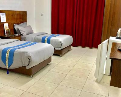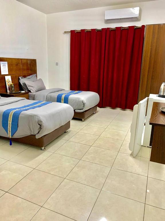 L’établissement Amir Palace Hotel se trouve à Aqaba, à 1 km de ce lieu d’intérêt : Plage Al-Ghandour. Il comprend une terrasse et offre une vue sur la ville. Cet hôtel 2 étoiles propose un salon commun ainsi que des hébergements dotés de la climatisation, d’une connexion Wi-Fi gratuite et d’une salle de bains privative. Vous pourrez profiter d'une cuisine commune, d'un service d'étage et d'un service de change.