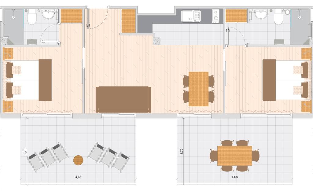 Vous trouverez une salle de bains privative avec une douche et des articles de toilette gratuits dans chaque logement, tout comme un sèche-cheveux.