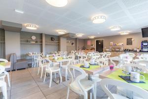 Le petit-déjeuner se compose de viennoiseries, de boissons chaudes et froides ainsi que d'une sélection de pains, notamment du pain sans gluten. Des fruits frais, de la salade de fruits, du fromage et des yaourts sont également proposés.