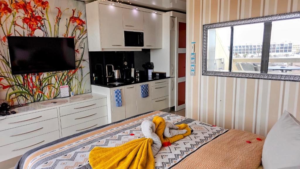 Cet appartement comporte 1 chambre, 1 salle de bains, du linge de lit, des serviettes, une télévision à écran plat avec les chaînes du câble, un coin repas, une cuisine entièrement équipée et une terrasse offrant une vue sur la mer.