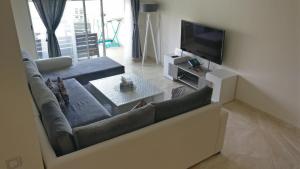 Disposant d’une terrasse et offrant une vue sur la mer, cet appartement comprend 2 chambres, un salon, une télévision à écran plat, une cuisine équipée avec un réfrigérateur et un four, ainsi que 2 salles de bains avec une douche.