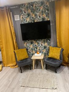 Cet appartement comporte 1 chambre, une télévision à écran plat, ainsi qu’une kitchenette.