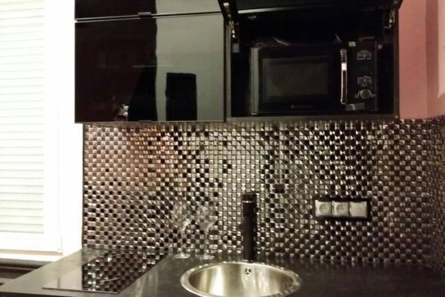 Un réfrigérateur, un four et un micro-ondes sont également à disposition dans la cuisine, de même qu’une machine à café.