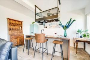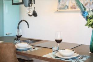 Cet appartement se compose de 1 chambre, d'un salon, d'une kitchenette entièrement équipée avec un réfrigérateur et une bouilloire, ainsi que de 1 salle de bains avec une douche et des articles de toilette gratuits. Des serviettes et du linge de lit sont à disposition.