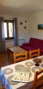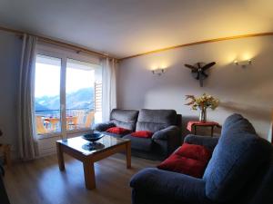 Les appartements disposent d'un balcon meublé avec vue sur la montagne. Ils comprennent tous un coin salon avec un canapé, une télévision et une table à manger.