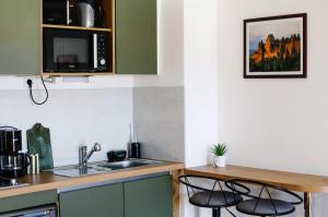Cet appartement comporte 1 chambre, une télévision à écran plat par câble, un coin repas, un salon, ainsi qu’une cuisine avec un réfrigérateur. Des serviettes et du linge de lit sont mis à votre disposition.