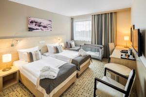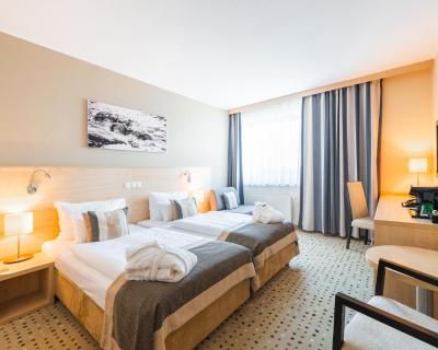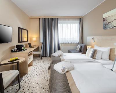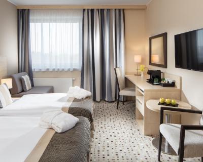 L’Aquapalace Hotel Prague est un hôtel non-fumeurs situé dans l’enceinte de l’Aquapalace Praha, le plus grand parc aquatique couvert d’Europe centrale. La plupart de ses logements incluent un accès gratuit et illimité au parc aquatique (sauf les chambres doubles ou lits jumeaux supérieures sans accès au parc aquatique).