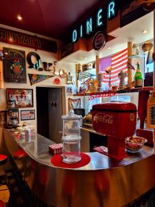 Doté d'une cafétéria de style américain, le restaurant La Grilladine sert une cuisine française traditionnelle ainsi que des spécialités régionales cuites sur des pierres volcaniques et accompagnées d'une sélection de vins locaux. Vous pourrez en outre prendre un verre au bar de l'hôtel.