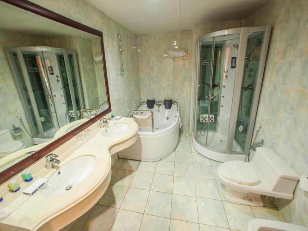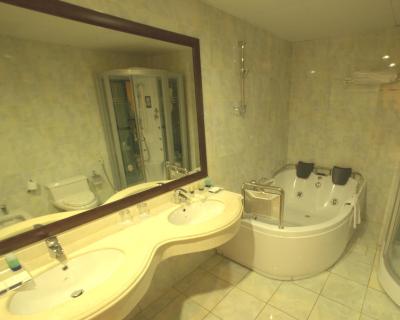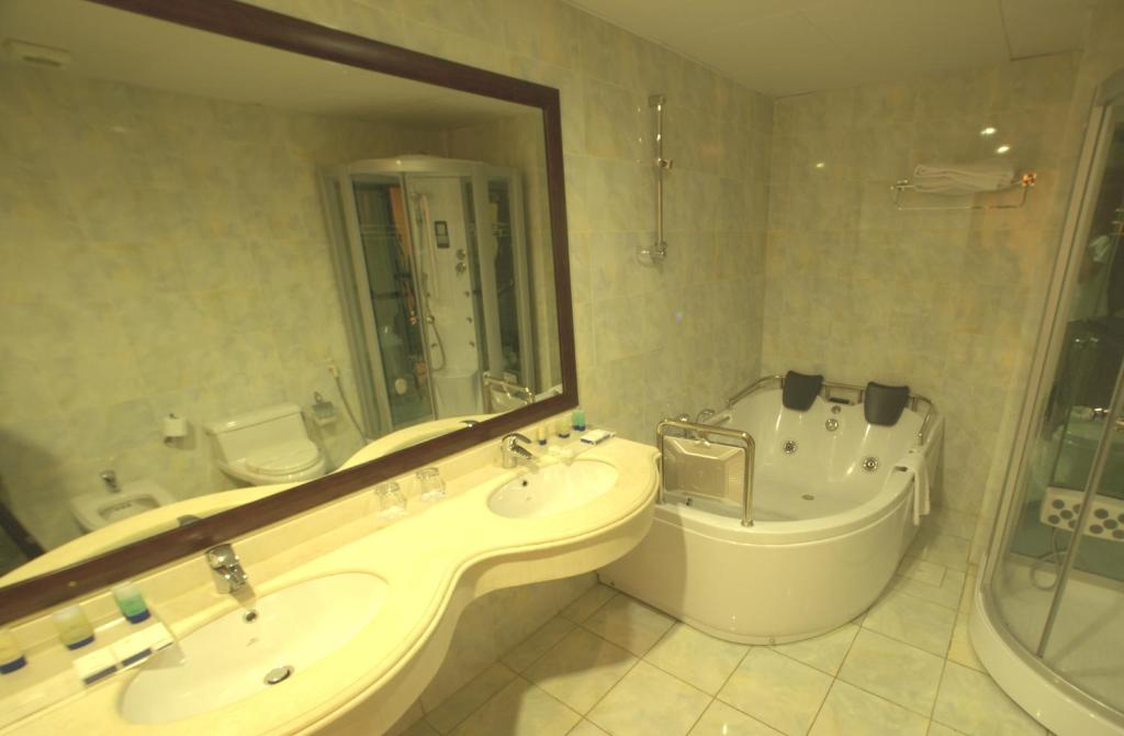 L'hôtel propose des chambres climatisées dotées d'un bureau, d'un minibar, d'un coffre-fort, d'une télévision à écran plat, d'un balcon et d'une salle de bains privative avec un spa.