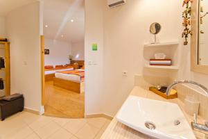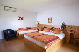 Un petit-déjeuner buffet est servi tous les jours dans le salon commun ou sur la terrasse. Le restaurant sur place propose des repas et des vins bio.