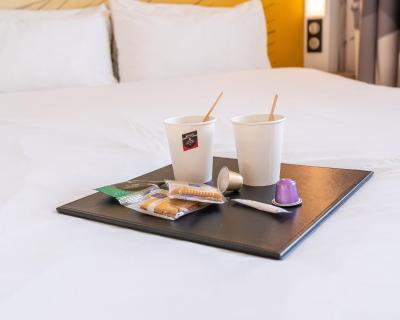 En dehors des horaires d'ouverture de la réception, rendez-vous à l'entrée de l'hôtel où un distributeur automatique vous permettra de récupérer à tout moment votre numéro de chambre et votre code d'accès.