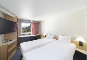 Toutes les chambres climatisées de l'B&B HOTEL Lourdes Centre disposent d'une télévision à écran plat, d'un téléphone et d'une salle de bains privative pourvue d'une douche.