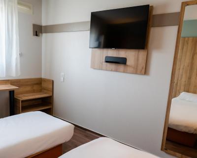 Les chambres disposent toutes d'une salle d'eau, d'un espace de rangement et d'une télévision à écran plat murale.