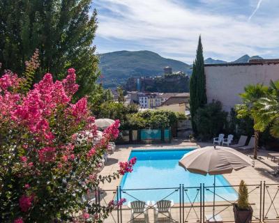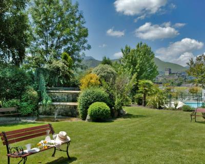 L'hôtel est entouré d'un parc arboré comportant une piscine chauffée (ouverte de mai à septembre) et une terrasse, qui offre une vue panoramique sur le beau paysage.