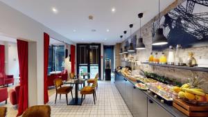 Un petit-déjeuner buffet est servi chaque matin dans la salle prévue à cet effet qui présente un plafond voûté. Un distributeur automatique de boissons est également à votre disposition.