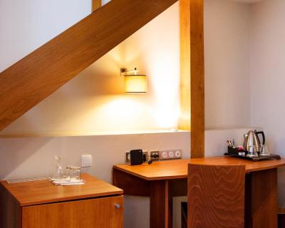 Veuillez noter que cette suite peut accueillir 4 personnes. Le tarif indiqué correspond à une occupation double ; un supplément de 15 EUR sera facturé par lit d'appoint.