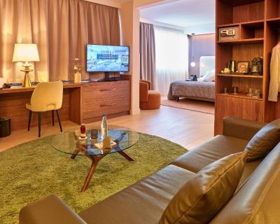 Les chambres spacieuses comprennent un plateau de courtoisie. La salle de bains moderne est pourvue d’une baignoire ou d’une douche à l'italienne. Les chambres sont climatisées et insonorisées.
