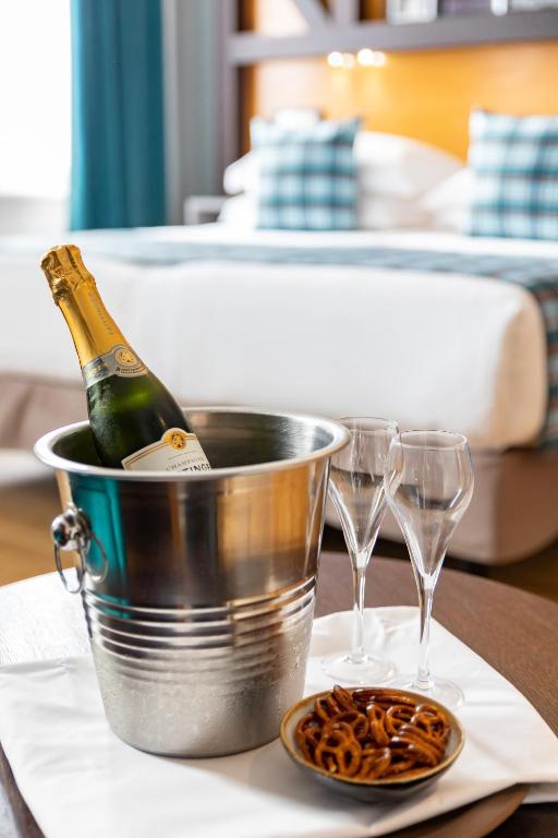 Un petit-déjeuner buffet composé d'œufs brouillés et de bacon vous sera servi chaque matin dans l'élégante salle de style alsacien prévue à cet effet. Bénéficiant de fauteuils propices à la détente, l'hôtel possède un bar moderne exposant des peintures d'artistes locaux.