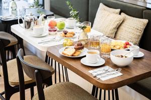 Un petit-déjeuner buffet, incluant des viennoiseries fraîchement cuites, du jus de fruits, du fromage et de la charcuterie, est servi tous les matins dans la salle de petit-déjeuner inspirée d’un salon de thé. Des cocktails et des boissons chaudes sont servis dans le salon, ouvert toute la journée.