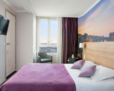 Les chambres à la décoration moderne de l’Hotel Rives de Paris-La Défense comprennent une télévision par satellite et une salle de bains privative.