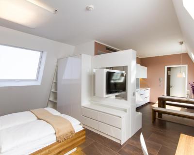 Studios and apartments with free Wi-Fi and a fully equipped kitchenette are offered at this new hotel in the centre of Mannheim.