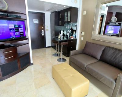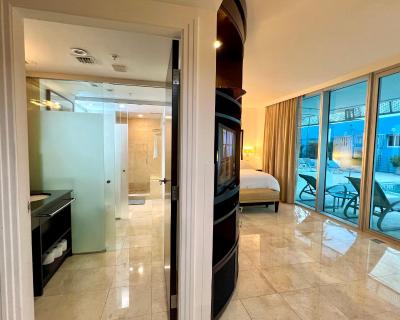 Cette suite spacieuse comprend un salon et 1 chambre séparée. La salle de bains est pourvue d’une douche à l’italienne et d’articles de toilette gratuits. Vous pourrez préparer vos repas dans la kitchenette équipée d'un réfrigérateur, d’un micro-ondes et d'ustensiles de cuisine. Offrant une vue sur la piscine, cette suite est climatisée et insonorisée. Elle dispose d’un coin salon, d'un plateau/bouilloire et d'une télévision à écran plat avec services de streaming. Ce logement comporte 2 lits.