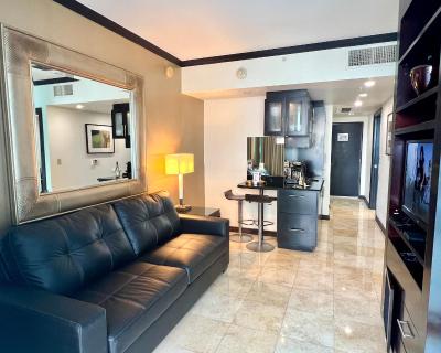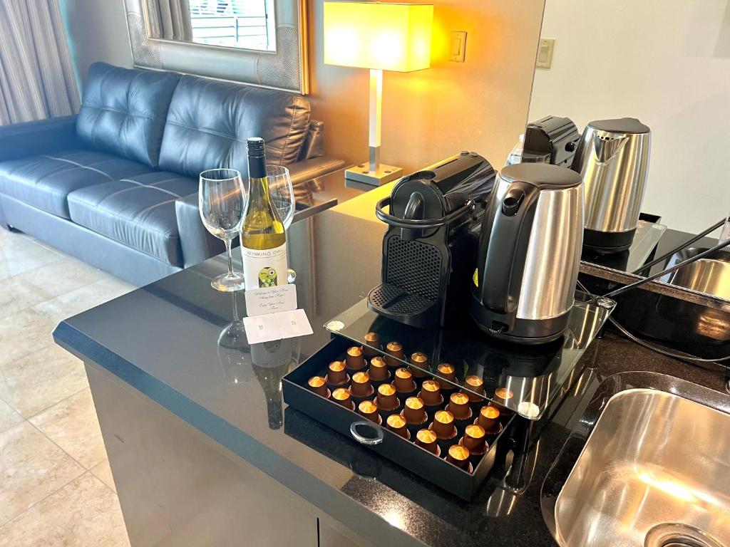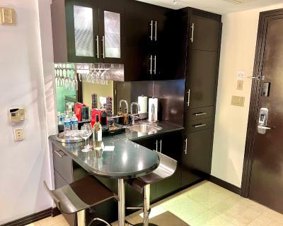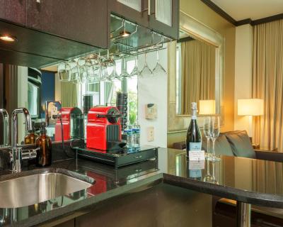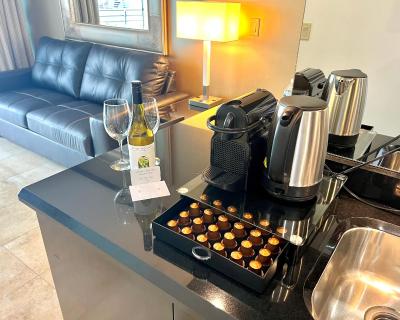 En séjournant dans cette suite, vous pourrez profiter d’un bain à remous. Cette suite spacieuse comprend un salon et 1 chambre séparée. La salle de bains est pourvue d’une douche à l’italienne et d’articles de toilette gratuits. La kitchenette bien équipée est munie d’un réfrigérateur, d’un micro-ondes, d’un plateau/bouilloire et d’ustensiles de cuisine. Dotée d’une terrasse, cette suite est climatisée et insonorisée. Elle dispose d’un coin repas et d’une télévision à écran plat avec services de streaming. Ce logement comporte 2 lits.