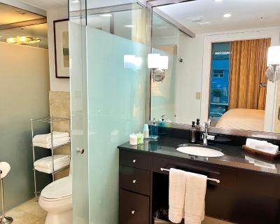 En séjournant dans cette suite, vous pourrez profiter d’une baignoire d'hydromassage. Cette suite spacieuse comprend un salon et 1 chambre séparée. La salle de bains est pourvue d’une douche à l’italienne et d’articles de toilette gratuits. Vous pourrez préparer vos repas dans la kitchenette équipée d'un réfrigérateur, d’un micro-ondes et d'ustensiles de cuisine. Offrant une vue sur la ville, cette suite est climatisée et insonorisée. Elle dispose d’une télévision à écran plat avec services de streaming, d’un plateau/bouilloire et d’un coin salon. Ce logement comporte 2 lits.