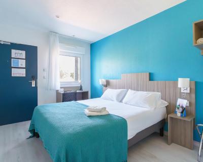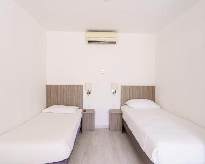 Nos chambres rénovées sont climatisées et équipées de salles de bains privatives, télévision à écran plat et chaînes sportives et cinéma (BEIN SPORT, CANAL+) pour ne manquer aucun événement sportif ou vos films préférés.