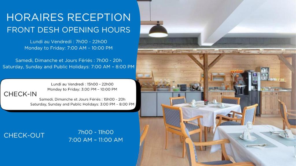 - Monday lunch, Saturday (lunch and dinner), Sunday evening, Public holidays (except July 14th and August 15th)