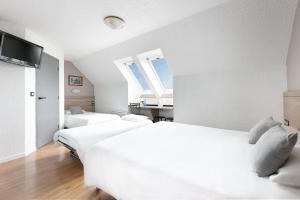Nos chambres confortables et fonctionnelles sont toutes équipées d'un bureau, d'une salle de bains privative avec sèche-cheveux, d'une télévision et d'une bouilloire. Certaines chambres sont accessibles aux personnes à mobilité réduite.