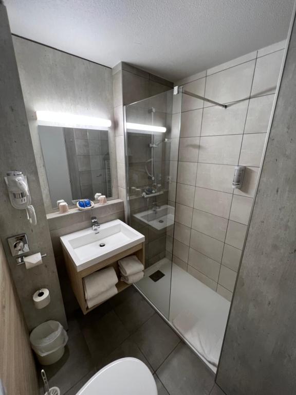 Les chambres du Brit Hotel Landivisiau sont toutes équipées d'une télévision par satellite à écran plat et d'une salle de bains privative.