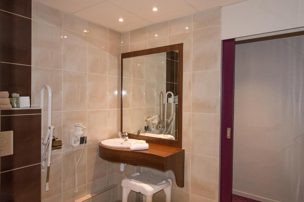 Les chambres du Brit Hotel Tours Sud - Le Cheops disposent d'un bureau, d'une salle de bains privative avec sèche-cheveux et d'une télévision par satellite à écran plat.