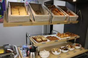 Un petit-déjeuner buffet est servi dans un espace dédié.