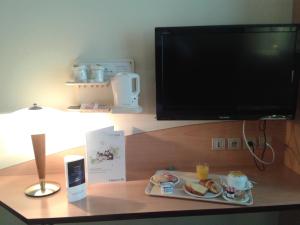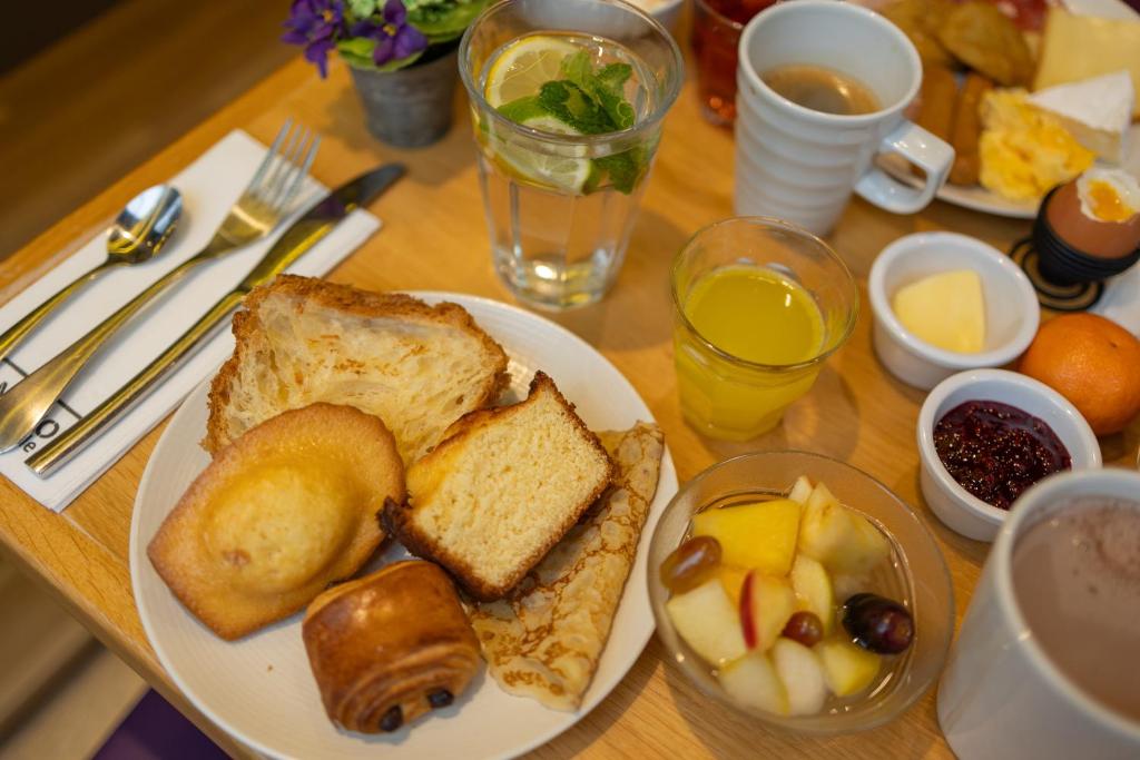 Le petit-déjeuner buffet se compose de jambon, de fromage, de viennoiseries, de pain et de salades de fruits. Un plateau de courtoisie est disponible dans chaque chambre.