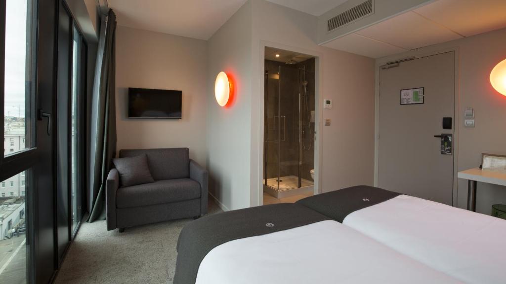Le Campanile Rennes Centre - Gare est situé en face de la gare TGV de Rennes, à 10 minutes à pied du centre-ville. Il propose des hébergements dotés d'une connexion Wi-Fi gratuite et un petit-déjeuner buffet tous les matins.
