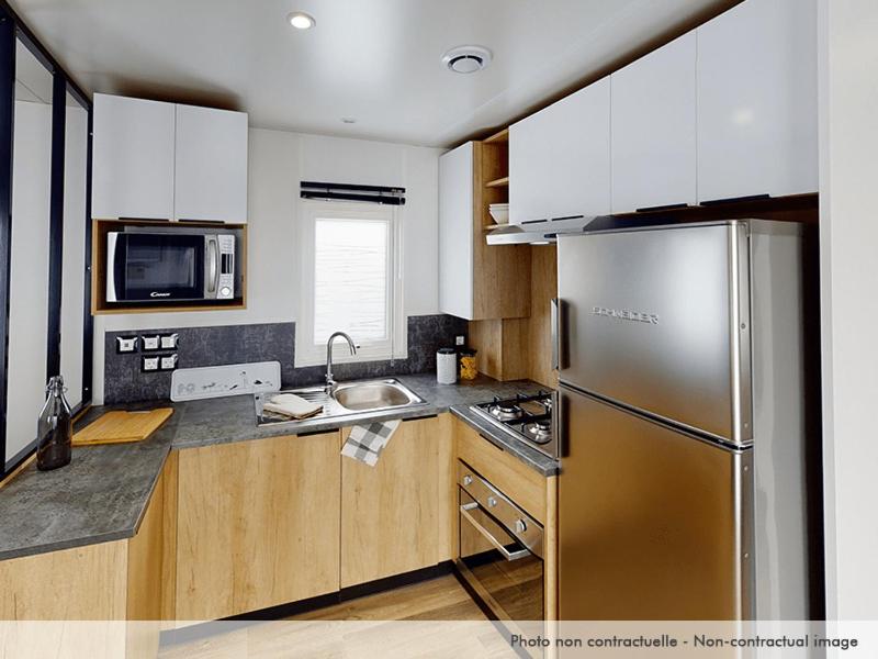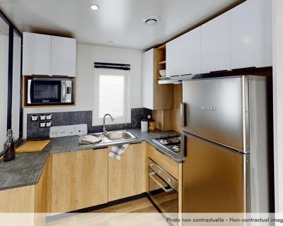 Les mobile homes sont dotés d'un mobilier de jardin, d'un barbecue et d'une kitchenette entièrement équipée. Leur salle de bains privative est pourvue d'une douche.