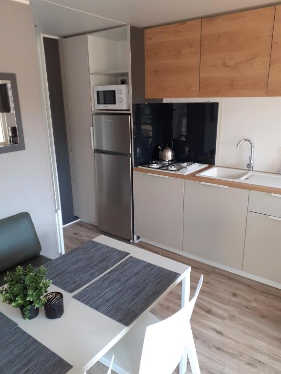 Un réfrigérateur est également à votre disposition, ainsi qu'une machine à café et une bouilloire.