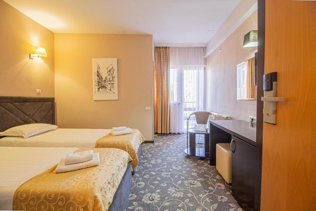 Each room comes with a flat-screen TV, a safety deposit box, a minibar, and a private bathroom with a shower. Some rooms are air-conditioned and some have a balcony.