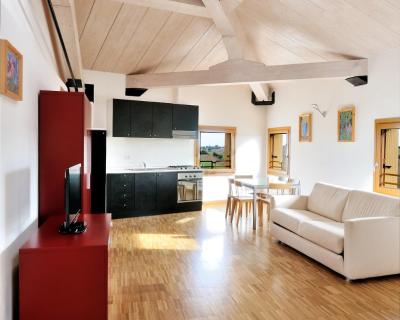Les suites du Castello Di Monterado disposent d'un salon séparé. Elles offrent toutes une vue sur la campagne environnante. Situés en face du château, les appartements disposent d'une cuisine entièrement équipée.