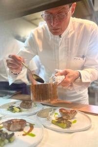 Le restaurant gastronomique propose des produits de saison et quelques plats du Sud-Ouest de la France. Vous pourrez vous détendre près de la cheminée en hiver et déjeuner dans le jardin ombragé à la belle saison.
