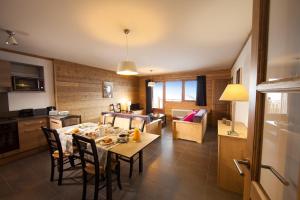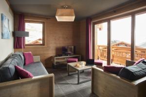 Les appartements du Chalet du Soleil présentent une décoration alliant les styles savoyard et contemporain. Ils disposent d’un balcon ainsi que d’un grand salon avec une télévision à écran LCD et un lecteur DVD.