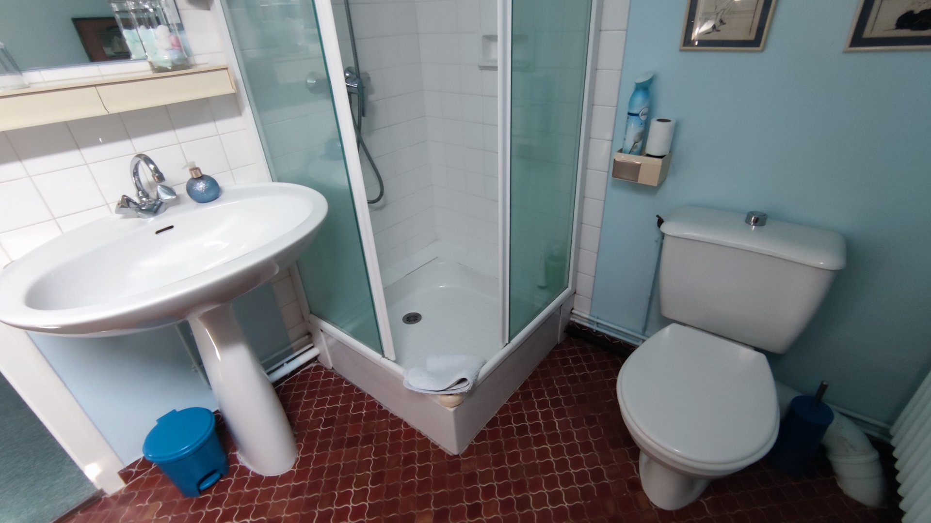 Une salle de bain, WC jouxte la chambre (douche 80).