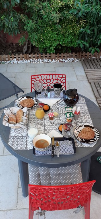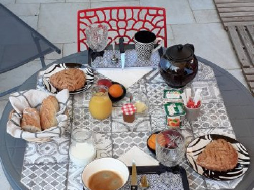 - Cour privative avec meubles de jardin, idéale pour prendre l’apéritif et le petit déjeuner qui est copieux et varié ;