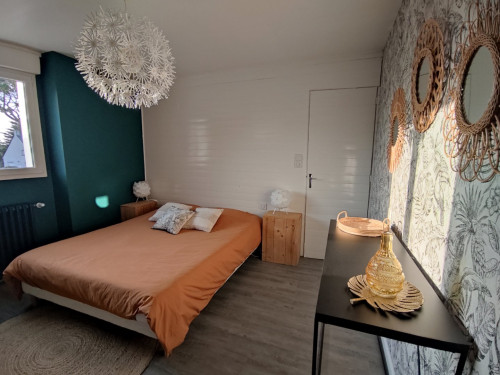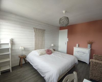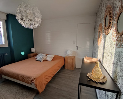 Jolie chambre à la décoration soignée, patères, un bureau et une chaise, une commode, deux chevets avec lampes. Quand la chambre Fanny est louée, la chambre Manue reste fermée pour une meilleure tranquillité, les deux chambres sont louées ensemble quand il s'agit d'amis ou de la famille.
