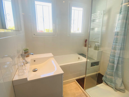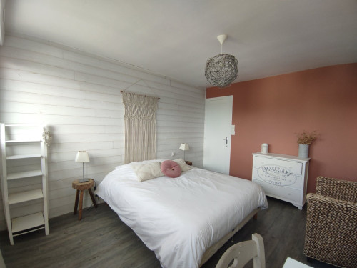 Jolie chambre à la décoration soignée, placards pour rangement, deux patères, deux tables de nuit et lampes, un fauteuil. Quand la chambre Manue est louée, la chambre Fanny reste fermée pour une meilleure tranquillité.